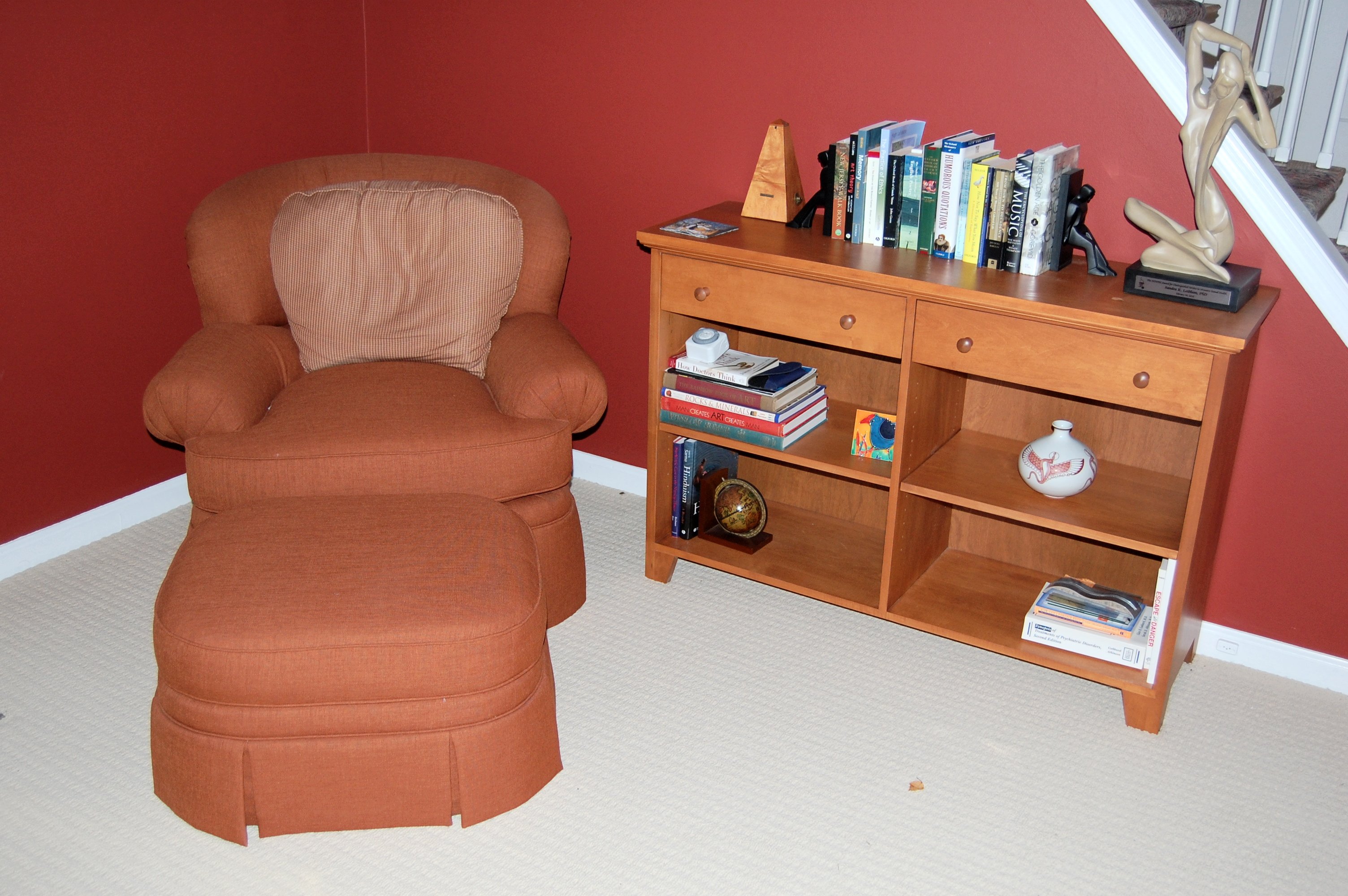 Living room ottoman and bookcase